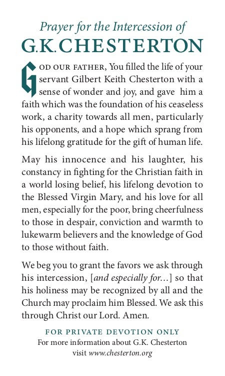 One well-known fan of G.K. Chesterton was Cardinal Jorge Bergoglio, Archbishop of Buenos Aires. He served as the honorary chairman of the Chesterton conference in Argentina and approved a prayer for Chesterton’s intercession. Shortly after that Chesterton conference, he became pope.