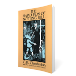 The book was The Napoleon of Notting Hill. It was written in 1904. The action of the story takes place 80 years into the future, or 1984. Ironically, some two decades after this book was written, Chesterton gave a break to a young writer by publishing his first essay in G.K.’s Weekly. The writer was Eric Blair, who, under his pen name of George Orwell, would also write a futuristic novel which takes place in. . . 1984. Chesterton’s book is not meant to be futuristic or prophetic, he simply needed a setting removed from his own day, but not from his own neighborhood. His most accurate prediction is about what would not happen. People would not change. Democracy would still be a challenge that most people would not face up to. The most capable people would refuse to take the responsibility of governing, and most people in general would regard government not so much with resentment as with indifference.
